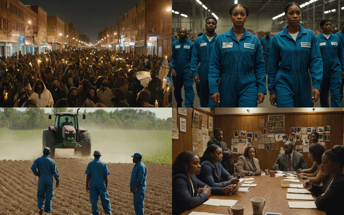 The image represents the author’s vision of what comes next—not just marching, but mass mobilization. It portrays a powerful uprising of Black Americans reclaiming their right to shape the future. If the laws can be bent for the powerful, they can be broken by the oppressed. United, we organize—not in protest alone, but in creation of a new future for ourselves and our families.